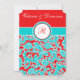 Cette invitation florale décorée d'un monogramme moderne de bleu de turquoise, de rouge, et blanche de mariage damassé est montrée ici sur le papier de base. Vous pourriez également employer le secteur de monogramme pour signifier un anniversaire, un anniversaire, ou une obtention du diplôme en changeant le texte en conséquence. Le type de papier et tous texte est entièrement personnalisable. Le **** s'assurent SVP que votre monogramme et tout le texte est centré et aligné où vous le voulez, car je ne verrai pas votre invitation une fois vous l'avoir commandée, et Zazzle n'éditera rien. Si vous avez besoin de n'importe quelle aide, svp envoyez-moi AVANT QUE vous passiez votre commande. Si vous avez besoin de n'importe quels articles assortis dans cette conception, envoyez svp votre demande à niteowlstudio@gmail.com. La carte- de réponse assortie est montrée ci-dessous.