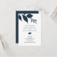 Économisez sur du papier et de l'argent avec ce faire-part de mariage budget monogramme avec code QR. Conçu dans un style simple mais élégant, cet hôtel de mariage présente une fontaine classique en bleu profond de minuit sur un arrière - plan blanc immaculé. Un top boarder de feuilles encadre vos détails mariages. La carte revient à une couleur bleue solide avec votre code QR mariage et de l'espace pour plus de détails. Toutes les couleurs sont personnalisables. Pour plus d'informations sur les invitations à un mariage pour un budget, visitez www.zazzle.com/dotellabelle