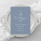 Cette élégante faire-part de mariage bleue poussiéreuse présente un front épuré et minimaliste avec typographie moderne, parfait pour les styles mariages romantiques ou classiques. Le dos comprend un code QR scannable qui mène directement à votre registre de cadeaux, ce qui permet aux invités de trouver et de magasiner facilement vos cadeaux préférés. Une touche design et attentionnée à votre suite mariage.