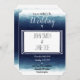 Faire-part de mariage dégradé Blue Ridge Mountains avec vos noms encadrés et nom paraphé à l'arrière.