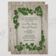 Une belle invitation verte avec une vigne sur l'arbre. Placez les prénoms du couple d'un côté avec toutes les informations et salutations du mariage de l'autre. Veuillez vérifier trois fois tout votre texte.