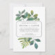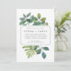 faire-part de mariage botanique vintage affiche vos détails mariages dans du lettrage noir foncé moderne, sur un arrière - plan de feuilles d'aquarelle vert peint, branches et fougères.