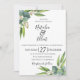 Aquarelle argent dollar et fleurs des branches d'eucalyptus saule, faire-part de mariage. Personnaliser texte, style de police, couleur et taille.