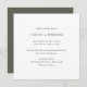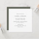 Faire-part de mariage carré simple et élégante. Texte en italique noir et en bloc avec dos vert sauge foncé.
