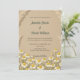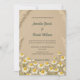 Apportez une touche de charme rustique à votre journée de mariage avec cette belle invitation en papier kraft. Avec ses délicates fleurs de camomille dessinées à la main en ivoire et jaune pâle, ses accents doux d'herbe de pampas et sa texture texturée, il crée une atmosphère chaude et naturelle. La zone centrale comprend du texte modifiable, ce qui rend simple la personnalisation avec vos noms, date mariage et détails. Idéal pour les couples qui aiment les designs terrestres, intemporels et naturels.