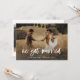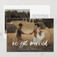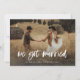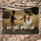Cette carte simple et rustique d'annonce de fuite de noces présente une photo de mariage personnelle sur le devant, avec les mots "nous nous sommes mariés" en écriture manuscrite décontractée et blanche. Le verso de la carte comporte un espace pour une autre photo, ainsi qu'un espace pour soit détailler les détails de votre fuite de noces, soit fournir des informations pour une réception ou une célébration après le mariage. Un design fantaisiste et élégant qui est le moyen idéal pour informer les amis et la famille que vous êtes tout juste mariés, surtout après un micro-mariage ou un mariage où seuls quelques invités ont pu être invités.