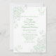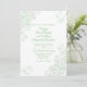 Faire-part de mariage chic et design, blanc avec fioritures vert clair, dans les coins et texte vert personnalisé. Personnalisez tous les champs de texte pour votre journée spéciale. Des produits mariages correspondants sont disponibles.