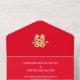 Faire-part de mariage chinois tout-en-un : spécialement conçu pour un mariage chinois, cette carte présente le symbole de la « double félicité ». Le caractère « double félicité » écrit xi ou « hsi » en mandarin et prononcé « shuang-xi » est un caractère chinois bien connu utilisé traditionnellement dans les mariages chinois comme symbole d'amour, de bonheur et de chance pour le couple nouvellement marié. L'utilisation de la couleur rouge est de bon augure, ainsi qu'une couleur populaire dans la culture chinoise, symbolisant la chance, le bonheur et la joie. Alors que la couleur or symbolise la richesse et la prospérité. Ce faire-part de mariage tout-en-un a la commodité d'une carte de réponse détachable afin qu'il n'y ait pas besoin d'envoyer une carte séparée à cet effet. Il vous permet également d'écrire à la main (par exemple avec de l'encre dorée) le nom et l'adresse de livraison de vos invités sur la partie centrale extérieure de cette carte sans avoir besoin d