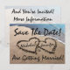 "Réservez la date !" est inscrit dans un texte élégant, ou vous pouvez facilement modifier le libellé, est ajouté à cette belle photographie professionnelle originale de deux cœurs écrits dans le sable le long de l'eau de l'océan bleu pour signifier l'amour et la romance. Insérez facilement le nom des mariés dans chaque cœur comme indiqué, et la date en dessous. Mettez votre texte personnalisé et vos détails et informations au dos de cette invitation populaire. Excellent concept pour les fiançailles estivales à venir, les mariages sur la plage, les anniversaires, et les invitations et annonces "save the date" pour le couple heureux.