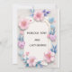 Un bel aménagement faire-part de mariage avec des éléments accrocheurs tels que des fleurs roses, des coeurs dessinés à la main et des touches d'aquarelle douce. Les couleurs pastel (rose clair, lavande pâle, bleu ciel et blanc crémeux) créent une touche romantique et charmante.