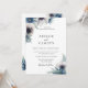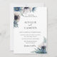 Elégante aquarelle bleu chardon et fleurs d'anémones, faire-part de mariage botanique.