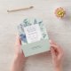 Des fleurs d'aquarelle bleu doux entourent un cadre renfermant les détails de cette belle faire-part de mariage tout-en-un. Les fleurs contrastent avec un arrière - plan aqua solide qui peut être changé à votre couleur préférée. Idéal pour un mariage à thème aquarelle, côtier, jardin ou aqua ou autre événement. Disponible avec des produits correspondants.