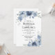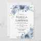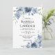 Faire-part de mariage floral d'origine aquarelle peinte à la main dans un bleu poussiéreux avec verdure. Faire-part de mariage floral élégant et moderne. Vous pouvez personnaliser le libellé, le style de police, la couleur et la taille devant et derrière l'invitation. Cette invitation fait partie d'un ensemble complet de mariages avec papier à lettres correspondant.