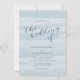 Notre faire-part de mariage Chiffon est sobre et élégant, avec un arrière - plan de lavage à l'aquarelle en ton sur les tons bleu ciel pâle, accentué de calligraphie chic et de lettrage serif en ardoise poussiéreuse. Une suite moderne en aquarelle mariage en bleu et gris pour toute saison.