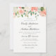Invitations de mariage élégantes avec un design d'aquarelle florale douce dans les tons rose pâle, pêche et vert. Le texte de style classique en gris clair peut être entièrement personnalisé. Collection de Mariages correspondants dans le Little Bayleigh Store!