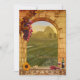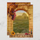 Faire-part de mariage classique sur le thème du vin, avec une peinture de paysage toscan italien avec une arche romaine, des raisins, du vin et un tournesol. Au dos se trouve un modèle de code QR pour renvoyer à votre site web de mariage.