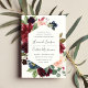 Notre faire-part de mariage Radiant Bloom entoure vos détails de mariage avec un cadre géométrique de fleurs d'aquarelle peintes en marsala bordeaux, rose rousse et bleu marine, avec feuillage botanique vert et feuilles d'eucalyptus. Un beau choix de couleurs luxuriantes et saturées pour les mariages d'automne ou d'hiver.