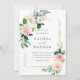 La Faire-part de mariage en fleurs blanches est ornée de fleurs d'aquarelle peintes dans un feuillage rose, blanc et vert avec des cadres dorés. Pour une personnalisation plus avancée de cette conception, veuillez cliquer sur le bouton "Personnaliser". Des articles correspondants sont également disponibles.