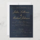 Minuit Dark Navy Blue Velvet Look Calligraphie Script Faire-part de mariage Suite Card. Moody, romantique et moderne. La texture bleue ressemble à du velours. Script de calligraphie couleur or. La ligne supérieure est une image de calligraphie personnalisée et non modifiable, mais peut être supprimé et remplacé par votre texte. Une partie de la suite Julia Faire-part de mariage. REMARQUE : si le bleu n'est pas votre couleur de thème mariage, vous pouvez supprimer l'image arrière - plan bleue et la changer en couleur arrière - plan.