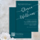 Invitation aimait les personnes dans le style avec ce faire-part de mariage turquoise chic avec calligraphie moderne, texte serif élégant, et un code QR intégré pour un accès facile aux détails RSVP et mariage. La disposition propre et le ton profond de bijou créent une esthétique moderne et intemporelle idéale pour des mariages élégants avec une touche audacieuse. Entièrement personnalisable pour votre journée spéciale.