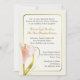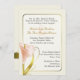 L'ivoire élégant a coloré le faire-part de mariage, avec un cadre goldtone mince et de beaux graphiques d'un zantedeschia léger de corail et d'or, dans en bas à gauche le faisant le coin de l'invitation. Le dos est également décoré de cette belle fleur avec une bande goldtone, avec les noms des jeunes mariés. Le texte dans le brun gris-foncé et d'or est entièrement personnalisable pour adapter à vos besoins. Invitation de style assez traditionnel, grande pour toute saison de l'année.