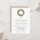 Cette invitation minimaliste de mariage hivernal présente une belle aquarelle en forme de couronne, idéale pour les couples à la recherche d'un look serein et élégant. L'arrière - plan doux et neutre en blanc met en valeur la délicate couronne, peinte de vert doux et d'arc rose.