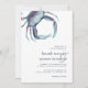 La faire-part de mariage côtière chic présente une illustration de crabe bleu aquarelle en haut à gauche en bleu de port passé, avec vos détails mariages en bleu marine classique. Parfait pour les mariages de plage, d'été ou de nautique, surtout ceux situés dans les régions de crabe bleu du milieu de l'Atlantique, ces invitations de mariage de style côtier s'inversent en bleu de port solide.
