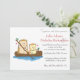Faire-part de mariage avec dessin de mignon couple de hériscans naviguant dans un bateau en bois. L'image a une ambiance romantique. Personnalisable pour les détails mariages. Le arrière - plan blanc peut être changé à votre couleur de choix. La page précédente est réservée pour la carte de l'emplacement mariage.