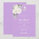 Pour une mariage élégante et romantique. Arrière - plan de couleur lavande décorée de fleurs blanches, rose. Personnalisez et ajoutez vos noms et détails.
