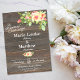 De belles fleurs d'aquarelle pêche ajoutent un effet romantique au dessus de l'arrière - plan rustique en bois foncé. Cette invitation est idéale pour un mariage campagnard à l'allure rustique. Les polices de script ajoutent une belle variation au flux global du faire-part de mariage. Les fleurs d'aquarelle sont en couleurs jaunes, roses, oranges avec un effet pêche et ont des feuilles verts. Cette invitation donne une première impression parfaite à vos invités de se réjouir d'un thème rustique mariage bien planifié. L'arrière de l'invitation est une couleur de bronzage solide qui peut être changée ou une image peut être ajoutée si vous le souhaitez.