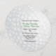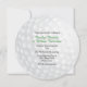 Faire-part de mariage rond unique, avec des graphiques d'un look de balle de golf motif blanc à pois. Personnalisez le texte en noir et vert pour répondre à vos besoins de partie de golf. Cartes RSVP correspondant disponibles.