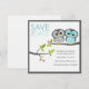 Ces mignons faire-part de save the date comportent une illustration vectorielle de deux hiboux perchés sur une branche. De nombreux coloris disponibles dans notre magasin et d'autres sur demande.