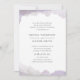Un élégant design d'invitation de mariage avec une bordure d'eau violet clair peinte sur un arrière - plan blanc conçu par Shelby Allison.