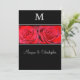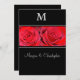 Ce faire-part de mariage formel élégant comporte les roses rouges lumineux avec des signes de mauve-foncé dans les ombres et les bords. La photographie renversante est encadrée avec les frontières noires et argentées minces et placée sur un arrière - plan noir dramatique. Votre monogramme et les prénoms de jeunes mariés dans le gris argenté accomplissent l'avant de l'invitation. Le dos est également noir, avec votre information de mariage dans le gris argenté assorti. Cette invitation est élégante pour l'été, ou n'importe quelle saison. Il y a pièce de changer le style, la police, et le placement du texte ; employez la "personnaliser lui" et les touches de déplacement du curseur pour aligner comme nécessaires. Contactez-moi si vous avez besoin d'aide ou avez une demande spéciale. Soyez sûr de voir les produits assortis !