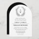 Une couronne dessinée à la main de branches feuillues encadre le monogramme à deux lettres du couple tandis que le type élégant permet une flexibilité maximale entre le libellé formel ou décontracté tout en éternel classique, noir et blanc se sent sophistiqué et intemporel.