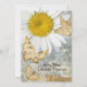 Invitation chaleureuse au mariage campagnard avec des images arrière - plans de papillons parchemin et de marguerites blanches et jaunes.