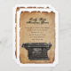 Ce faire-part de mariage amusant et insolite présente une machine à écrire vintage et un vieux parchemin en lambeaux comme arrière - plan. Parfait pour les écrivains ou les amateurs de machines vintages. Retro feel fonctionne également pour les thèmes steampunk. Si vous avez une question ou une demande, ou si vous souhaitez obtenir d'autres produits correspondants, n'hésitez pas à me contacter à riverjude.designs@yahoo.com