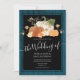 Citrouilles d'aquarelle avec éléments de parties scintillant. Invitations de mariage élégantes. Fêtes d'automne. Arrière - plan texturé en bois de campagne bleu.