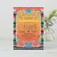 C'est de la parties scintillant en or FAUX. Joli et coloré Faire-part de mariage mexicaine Fiesta avec des fleurs vives et des maracas contre un arrière - plan de tapis aztèque, avec une fausse parties scintillant d'or en arrière. Beaucoup d'éléments correspondants pour vous mariage sur cette conception