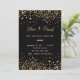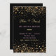 Jolie Faire-part de mariage de Parties scintillant Noir et Or. Faire-part de mariage noir et or avec lettrage violet/rose.