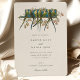 Cette invitation est un véritable témoignage de la beauté naturelle et de la sophistication. L'avant de la carte est ornée d'un arrière - plan beige paisible, ce qui ouvre la voie à un superbe ovale bleu marine qui berce une paire de perroquets gracieux. Leur plumage est une danse vivante de chartreuse, vert de forêt, et de subtils jaunes baisés au soleil, qui contraste magnifiquement avec les plumes de queue bleues de minuit qui semblent plonger dans la page. Autour d'eux est un ensemble de fleurs dans la pêche pastel, rose roux, et des blancs crémeux, entrelacés de sauge luxuriante et de feuillage vert d'eucalyptus. L'inverse est tout aussi enchanteur, présentant un éventail social de perroquets sur une perche, leurs plumes un kaléidoscope de verts, d'or et de bleus, accentués par les mêmes fleurs délicates. Le choix d'un script classique pour le texte ajoute un élément de romance intemporelle à la pièce.