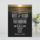 Le faire-part de mariage de plage de coucher du soleil comporte un coucher du soleil d'or romantique chaud outre de la côte. Customisez le texte pour adapter à vos besoins de mariage. Soyez sûr d'éditer le dos aussi bien, si vous avez n'importe quelles informations supplémentaires pour vos invités.