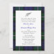Faire-part de mariage écossais traditionnel de plaid de tartan, fait avec le beau tartan bleu et vert du clan de Forbes. Un secteur coloré par blanc des textes, au milieu a une fronde argentée de fougère de ton au dessus. Le texte est dans noir et le bleu et est entièrement personnalisable pour adapter à vos besoins de mariage. Personnalisez le texte pour adapter à vos besoins.