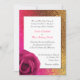 Contrecarrez le faire-part de mariage de regard dans un rose de gradient à l'or, avec un secteur blanc des textes de recouvrement. Les graphiques élégants d'une fleur rose rose, décore en bas à gauche le faisant le coin de l'invitation. Tout le texte est personnalisable et prêt à personnaliser pour votre jour spécial.