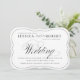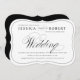 Faire-part de mariage classique noir et blanc sobre avec une touche moderne avec l'élégant script du mot "Mariage". La forme découpée et la bordure sont facultatives. La plupart des invitations que je conçois seront excellentes pour toute saison : hiver, printemps, été, automne ou mariages d'automne. Elles sont également classées comme vintages, anciennes, élégantes, formelles, noires et blanches ou traditionnelles.