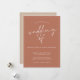 Faire-part de mariage Minimal De Script En Terracotta. Impressionnez vos invités mariages avec ce faire-part de mariage orange brûlé branché avec un magnifique script blanc sur un arrière - plan en terre cuite étonnant. Cette Invitation a un superbe design orange brûlé, avec des vibes modernes et minimes, parfait pour votre mariage simple, tendance, minimaliste. La disposition minimale et élégante attire l'attention sur le script blanc, en contraste avec l'arrière - plan en terre cuite. Cette invitation donnera le ton d'un beau cadre mariage, entouré de fleurs blanches, orange ou marron, et d'une décoration mariage orange brûlée assortie. Un complément parfait à toute célébration mariage en terre cuite muette ou belle. Le Collectif du dimanche © par Rachel Hannah Gee