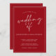 Faire-part de mariage de script rouge Crimson minimal. Impressionnez vos invités mariages avec ce faire-part de mariage rouge pourpre branché avec un magnifique script blanc sur un arrière - plan rouge époustouflant. Cette Invitation a un design rouge cramoisi étonnant, avec des vibrations modernes et minimes, parfait pour votre mariage simple, tendance et minimaliste. La disposition minimale et élégante attire l'attention sur le script blanc, en contraste avec l'arrière - plan rouge. Cette invitation donnera le ton d'un beau cadre mariage, entouré de fleurs blanches, en cuivre ou en roux, et d'une décoration mariage rouge pourpre assortie. Un complément parfait à toute célébration mariage rouge pourpre, muette ou belle.