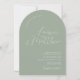Présentez votre fête mariage avec une élégance intemporelle à l'aide de notre Faire-part de mariage en forme d'arc. Cette invitation exquise est conçue pour les couples qui apprécient la beauté de la simplicité et du raffinement. La silhouette d'arc unique offre une présence gracieuse et contemporaine, assurant qu'il capte l'attention et sert de gardien chéri à vos invités. L'arrière - plan vert sauge offre une toile élégante et classe, qui complète parfaitement le design minimaliste et améliore l'esthétique générale. Le choix du texte blanc apporte une touche de sophistication classique, assurant ainsi la clarté et le style des détails mariages. Au coeur de ce design se trouvent les noms élégamment scénarisés de la mariée et du marié. Ce choix de police ajoute une touche personnelle et intime, faisant de vos noms le point central de l'invitation avec une grâce sobre. Idéal pour une variété de thèmes mariages, des célébrations de la ville chic aux rassemblements de jardin intimes, le design intemporel de cette invitation lui assure un complément de style tout en ajoutant une touche d'élégance contemporaine. Invitation vos proches pour célébrer votre journée spéciale avec notre Faire-part de mariage en forme d'arc, où l'élégante simplicité rencontre classe intemporelle. Laissez cette belle invitation donner le ton à un mariage rempli d'amour, de joie et de souvenirs inoubliables.
