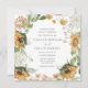 Elégante faire-part de mariage à thème d'automne entourée de tournesols aquarelles, de verdure et de fleurs d'été. Personnalisez avec vos informations ou cliquez sur "Cliquez pour customiser plus loin" pour modifier les styles, la taille et les couleurs des polices.