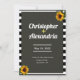 Voici notre magnifique faire-part de mariage de tournesol, parfait pour les couples à la recherche d'un design simple et moderne pour leur journée spéciale. L'invitation est faite d'un arrière - plan gris foncé avec un texte blanc, ce qui lui confère une atmosphère élégante et sophistiquée. La bordure rayée noir et blanc apporte une touche de design contemporain, idéal pour les couples qui souhaitent introduire un peu de personnalité dans leur mariage. Dans chaque coin de l'invitation, vous trouverez un délicat tournesol, ajoutant une pop de couleur et une touche de beauté naturelle à la conception. Le tournesol est un symbole de bonheur et de positivité, ce qui en fait le choix idéal pour les couples qui souhaitent célébrer leur amour de manière joyeuse et enrichissante. Ce faire-part de mariage de tournesol est parfait pour n'importe quel type de mariage, que vous planifiez une cérémonie en plein air, un mariage de grange rustique, ou une célébration urbaine moderne. Il est également très polyvalent et peut être customisé pour s'adapter à vos préférences uniques, y compris le style et le libellé de la police. Dans l'ensemble, notre faire-part de mariage de tournesol est un beau choix intemporel que vous et vos invités aimerez pour les années à venir.